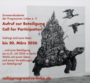 Progressive Linke e.V. Aufruf zur Beteiligung – Call for Participation Sommerakademie der Progressiven Linken 2026 Die Progressive Linke e.V. wird am 4. und 5. Juli…